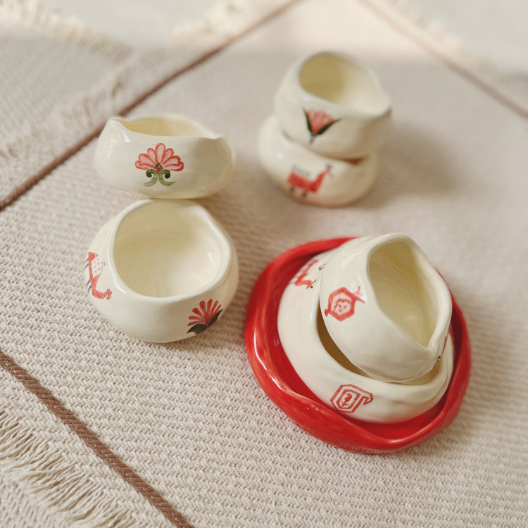 ست هفت سین سرامیکی دفرمه نقاشی خاص با دست کد ۱۴۰۵ دیماسرام